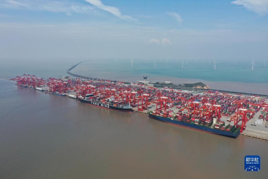 這是2022年9月23日拍攝的上海洋山港集裝箱碼頭(無(wú)人機(jī)照片)。新華社記者 丁汀 攝