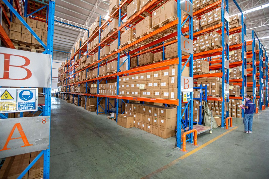 工作人員在泰中羅勇工業(yè)園的配件倉(cāng)庫(kù)工作。( 新華社記者王騰攝)