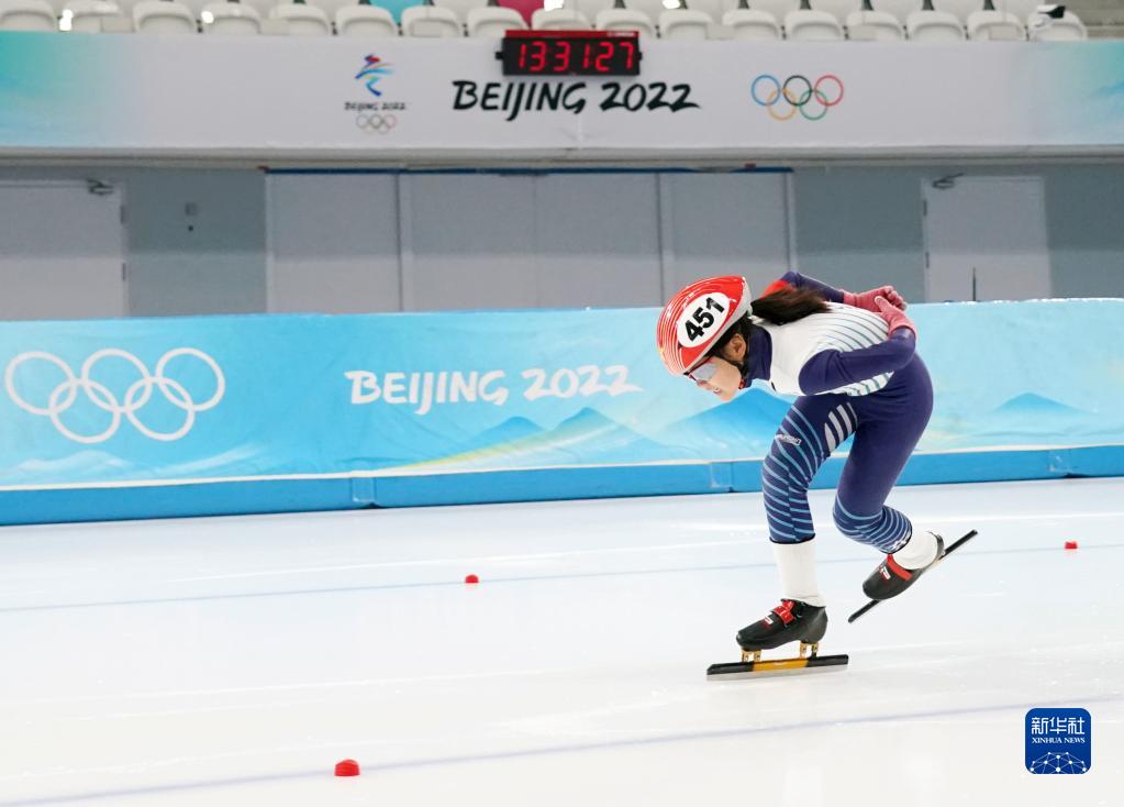 2023年2月4日,張騫予在國(guó)家速滑館參加“冰絲帶”市民速度滑冰比賽。新華社記者 張晨霖 攝