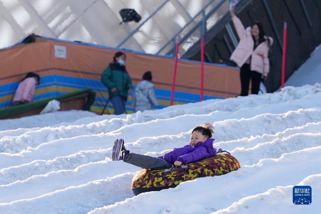 在黑龍江哈爾濱,零下十幾攝氏度的室外溫度阻擋不了人們?cè)诒獾乃苫ń贤嫜┑仫L(fēng)箏、冰球、雪地自行車(chē)、冰雪滑道等項(xiàng)目。