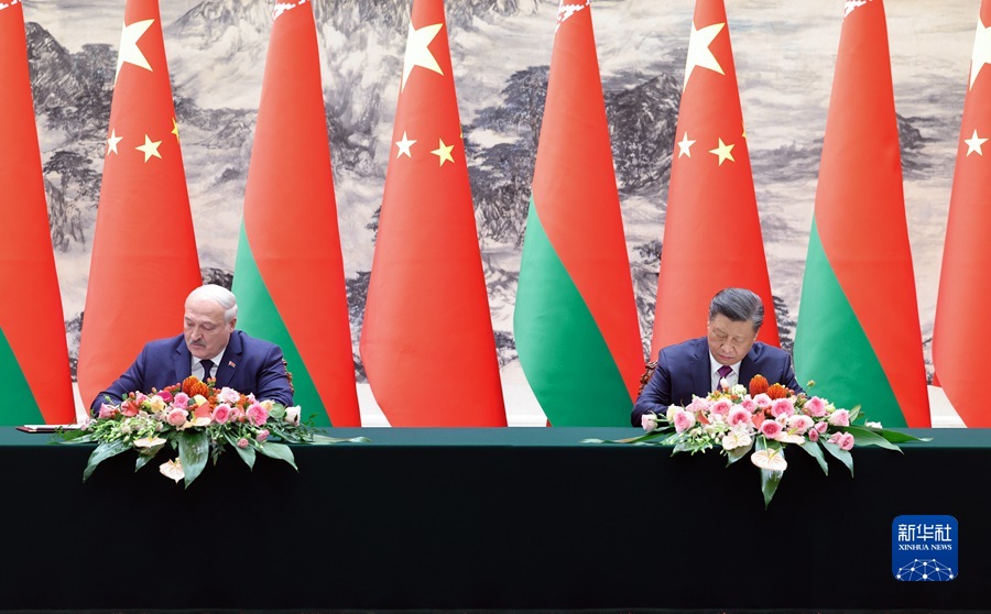 會(huì)談后,兩國元首共同簽署《中華人民共和國和白俄羅斯共和國關(guān)于新時(shí)代進(jìn)一步發(fā)展兩國全天候全面戰(zhàn)略伙伴關(guān)系的聯(lián)合聲明》,并見證簽署經(jīng)貿(mào)、工業(yè)、農(nóng)業(yè)、海關(guān)、科技、衛(wèi)生、旅游、體育、地方等領(lǐng)域多項(xiàng)雙邊合作文件。