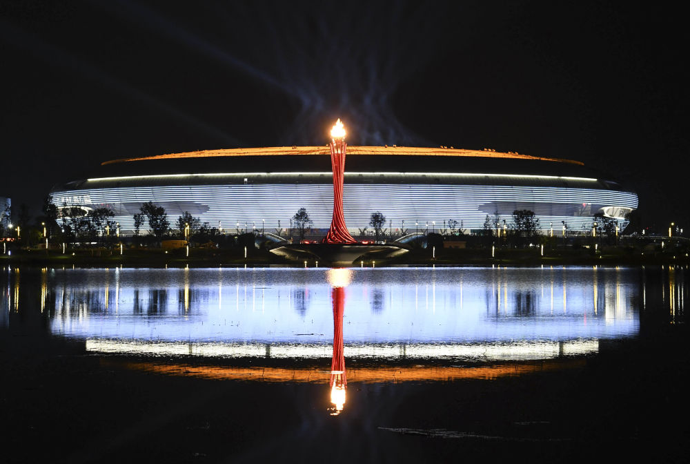 這是2023年7月28日拍攝的第31屆世界大學生夏季運動會主火炬。新華社記者 張端 攝
