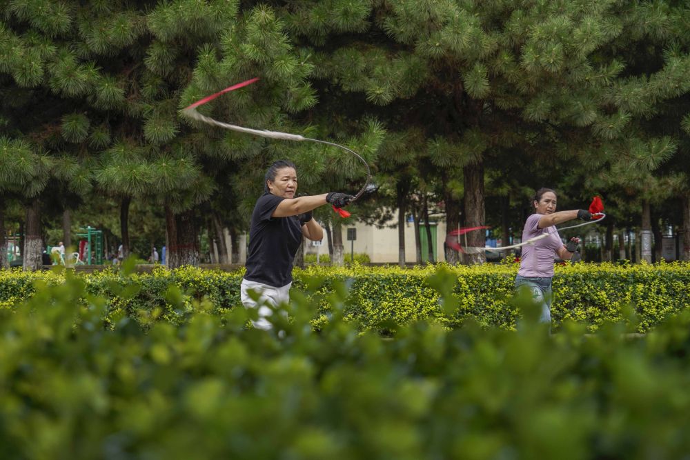 2023年8月6日,市民在河北省遵化市人民公園練習健身鞭。新華社發(fā)(劉滿倉攝)