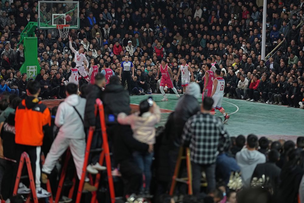 2023年3月25日,當?shù)厝罕娪^看貴州省首屆“美麗鄉(xiāng)村”籃球聯(lián)賽總決賽。新華社記者 李尕 攝