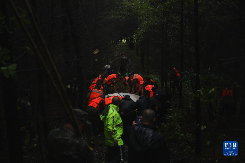 8月7日,武警黑龍江總隊(duì)牡丹江支隊(duì)官兵正穿過(guò)密林準(zhǔn)備將沖鋒舟抬至海浪河岸邊。新華社發(fā)(劉飛 攝)