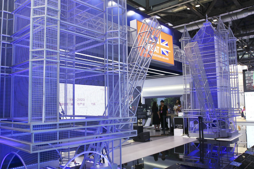 國家會議中心綜合展區(qū)內(nèi),主賓國英國國家館展臺前參觀者絡(luò)繹不絕。英國體育科技企業(yè)REZZIL運營部主管克萊福德正忙著為中國參觀者展示公司的虛擬現(xiàn)實互動產(chǎn)品。
