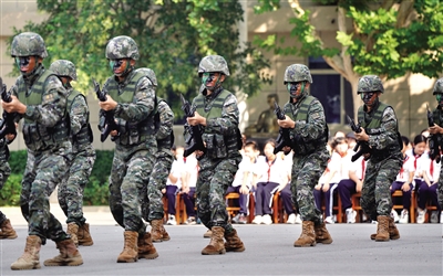 ??在軍事科目演示環(huán)節(jié),戰(zhàn)士們動(dòng)作流暢、剛勁有力?!疤鸷沉?!希望我9歲的兒子長(zhǎng)大后能夠成為一名軍人,保家衛(wèi)國(guó),做真正的男子漢?!笔忻駞窍壬f(shuō)。