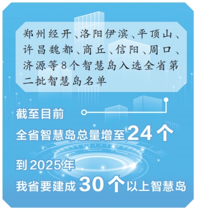 ??11月8日,記者獲悉,省人民政府辦公廳日前公布全省第二批智慧島名單,鄭州經(jīng)開、洛陽伊濱、平頂山、許昌魏都、商丘、信陽、周口、濟源等8個智慧島入選。截至目前,全省智慧島總量增至24個。
