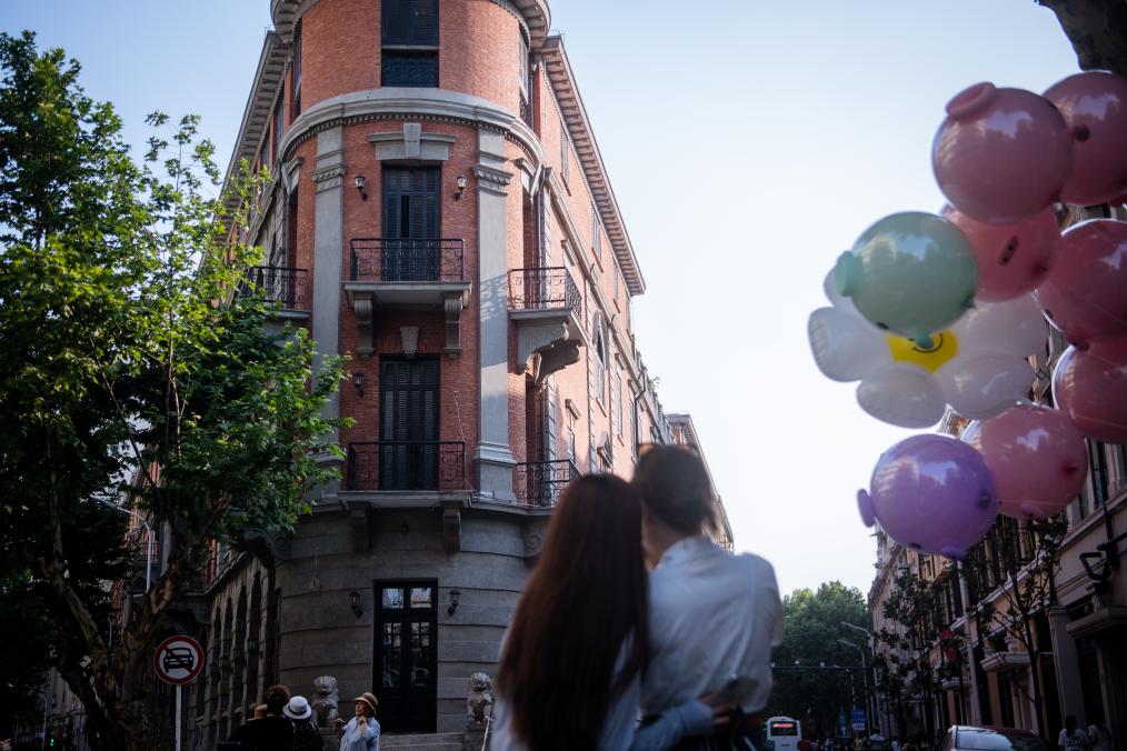 ??2023年6月6日,游客在武漢市漢口歷史風(fēng)貌區(qū)巴公房子前拍照。隨著漢口歷史風(fēng)貌區(qū)舊城改造城市更新項(xiàng)目的推進(jìn),風(fēng)貌區(qū)內(nèi)一座座老建筑被修繕、改造,融入現(xiàn)代生活,煥發(fā)新的生命。新華社記者 伍志尊 攝
