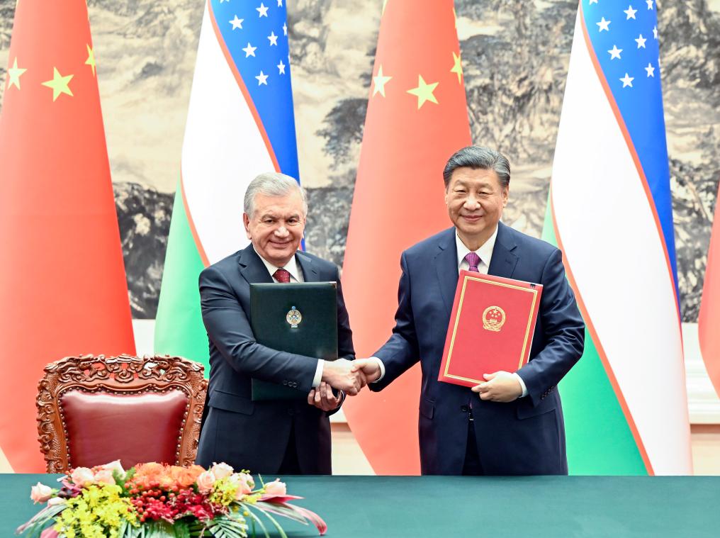 ??1月24日下午,國家主席習(xí)近平在北京人民大會堂同烏茲別克斯坦總統(tǒng)米爾濟(jì)約耶夫舉行會談。會談后,兩國元首簽署并發(fā)表了《中華人民共和國和烏茲別克斯坦共和國關(guān)于新時代全天候全面戰(zhàn)略伙伴關(guān)系的聯(lián)合聲明》。