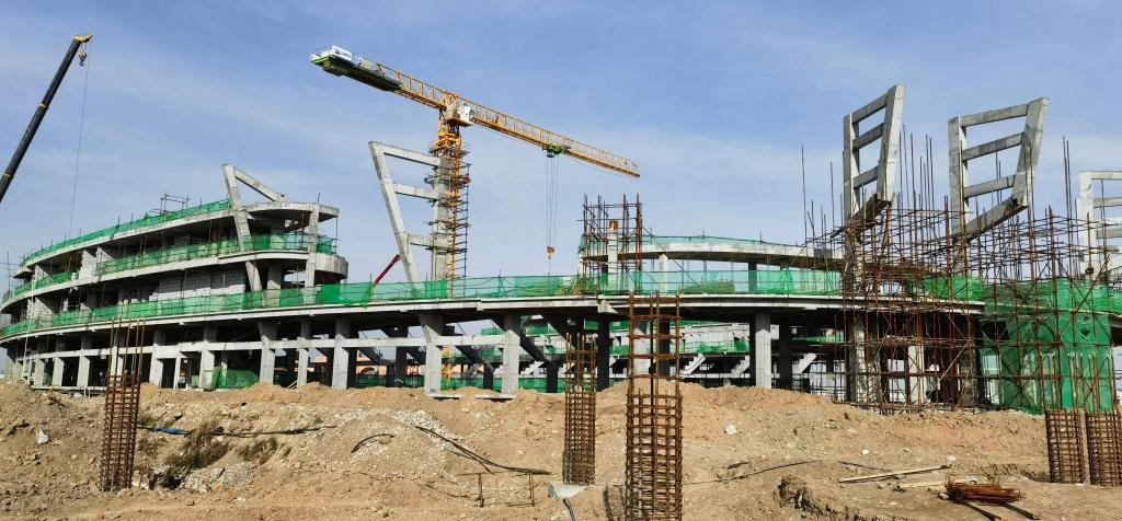 位于塔什干的奧林匹克城項目工地上,中烏施工團(tuán)隊正辛勤工作。
