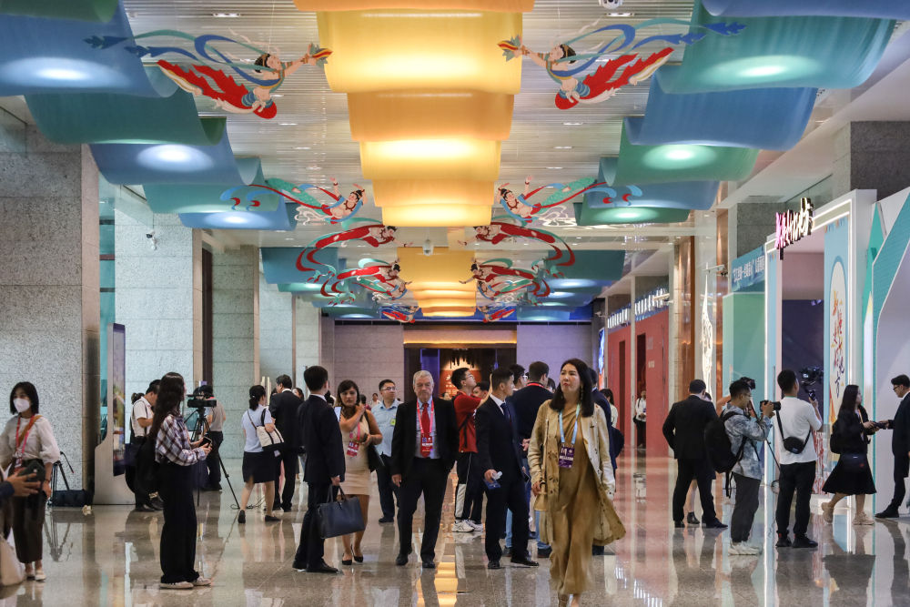 2023年9月6日,與會(huì)嘉賓在第六屆絲綢之路(敦煌)國際文化博覽會(huì)上參觀。新華社記者 馬希平 攝