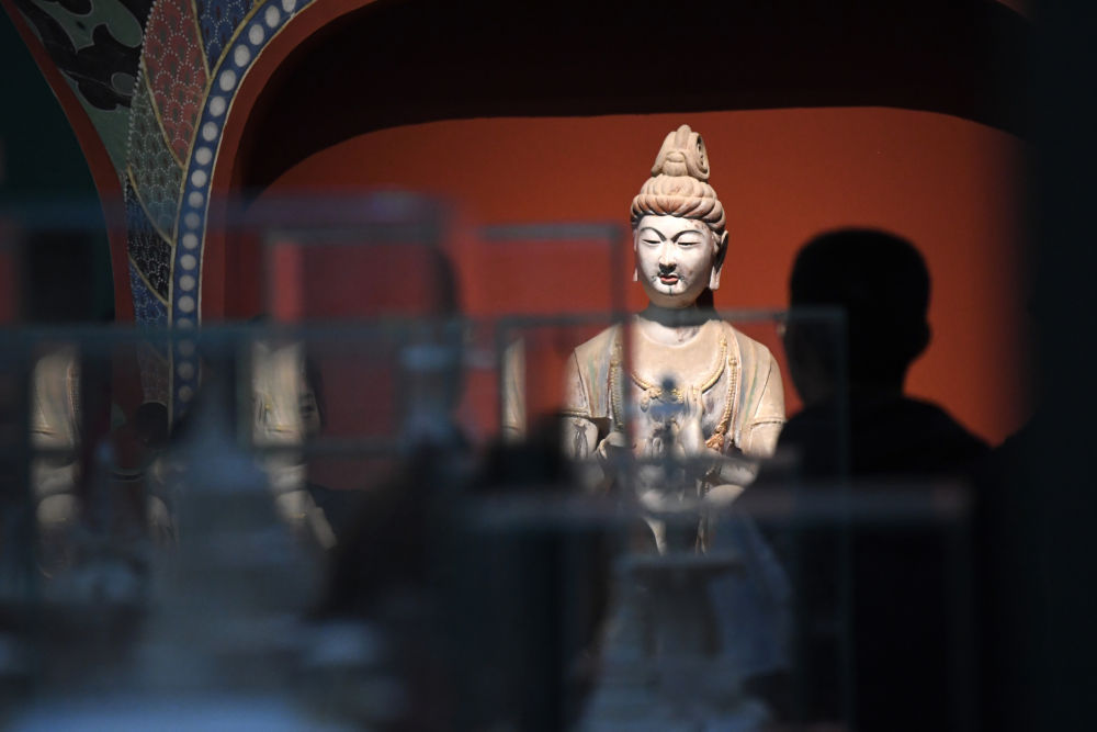 觀眾在敦煌研究院蘭州分院敦煌藝術(shù)館參觀(2023年4月5日攝)。新華社記者 陳斌 攝