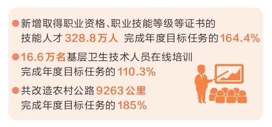 開展職業(yè)技能培訓和評價取證。2023年,全省累計開展職業(yè)技能培訓428.7萬人次,新增取得職業(yè)資格、職業(yè)技能等級等證書的技能人才328.8萬人,高技能人才124.8萬人,分別完成年度目標任務(wù)的142.9%、164.4%、155.9%。