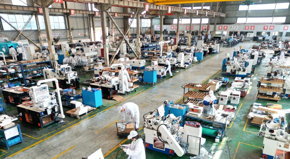 ??2月20日,工人在貴州省黔東南苗族侗族自治州丹寨縣金鐘經(jīng)濟開發(fā)區(qū)一家生產(chǎn)機床的企業(yè)車間忙碌(無人機照片)。新華社發(fā)(余天英 攝)