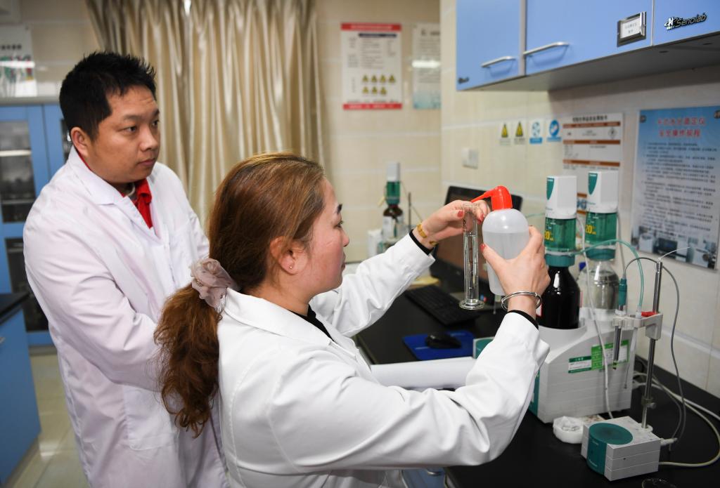 ??工作人員在重慶涪陵頁(yè)巖氣田油氣化驗(yàn)室作業(yè)。
