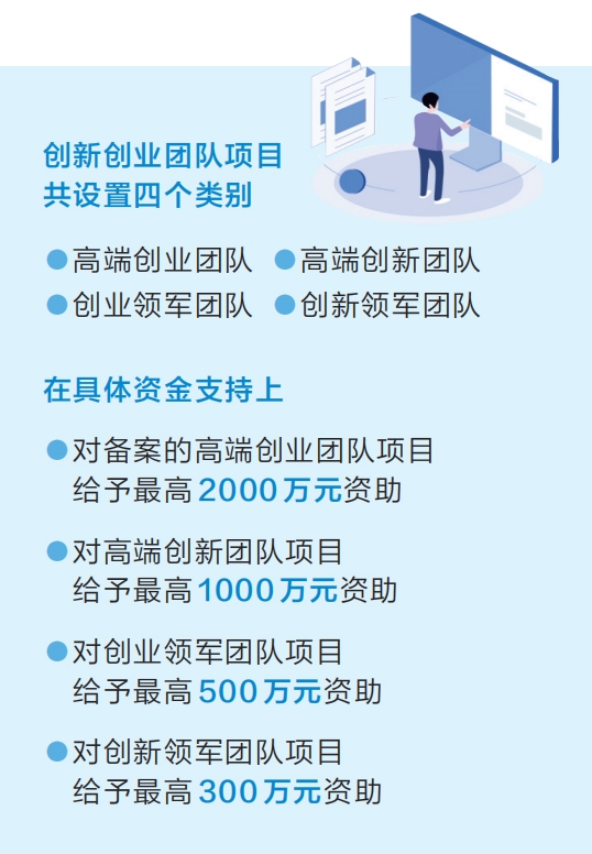 據(jù)介紹,創(chuàng)新創(chuàng)業(yè)團隊項目共設置高端創(chuàng)業(yè)團隊、高端創(chuàng)新團隊、創(chuàng)業(yè)領軍團隊、創(chuàng)新領軍團隊四個類別。