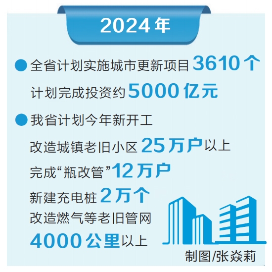 2024年,全省計(jì)劃實(shí)施城市更新項(xiàng)目3610個(gè),計(jì)劃完成投資約5000億元。當(dāng)前,各地正在采用“全面體檢+重點(diǎn)體檢”的方式,建立住房、小區(qū)(社區(qū))、街區(qū)、城區(qū)維度的底圖、底數(shù),8月底前形成體檢成果,城市體檢發(fā)現(xiàn)的問(wèn)題將作為城市更新的重點(diǎn),做到先體檢后更新。