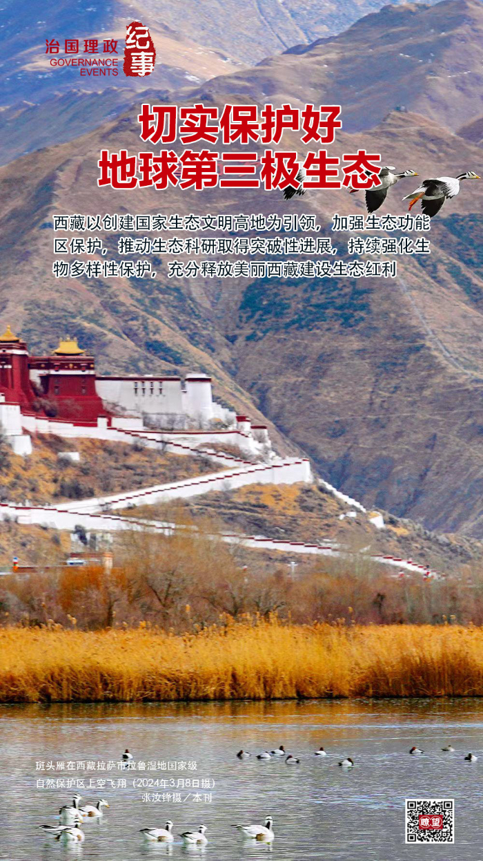 ??◇2021年7月,中共中央總書(shū)記、國(guó)家主席、中央軍委主席習(xí)近平在西藏考察時(shí)指出,保護(hù)好西藏生態(tài)環(huán)境,利在千秋、澤被天下。要牢固樹(shù)立綠水青山就是金山銀山、冰天雪地也是金山銀山的理念,保持戰(zhàn)略定力,提高生態(tài)環(huán)境治理水平,推動(dòng)青藏高原生物多樣性保護(hù),堅(jiān)定不移走生態(tài)優(yōu)先、綠色發(fā)展之路,努力建設(shè)人與自然和諧共生的現(xiàn)代化,切實(shí)保護(hù)好地球第三極生態(tài)。 ??◇西藏以創(chuàng)建國(guó)家生態(tài)文明高地為引領(lǐng),加強(qiáng)生態(tài)功能區(qū)保護(hù),推動(dòng)生態(tài)科研取得突破性進(jìn)展,持續(xù)強(qiáng)化生物多樣性保護(hù),充分釋放美麗西藏建設(shè)生態(tài)紅利。 ??◇2023年底,西藏全區(qū)7市(地)空氣環(huán)境質(zhì)量平均優(yōu)良天數(shù)比例達(dá)99%以上,沙塵天氣大幅減少;主要江河湖泊水質(zhì)達(dá)到或優(yōu)于III類(lèi)標(biāo)準(zhǔn),城鎮(zhèn)集中式飲用水水源地水質(zhì)達(dá)標(biāo)率100%,土壤環(huán)境安全穩(wěn)定,西藏生態(tài)環(huán)境質(zhì)量保持全國(guó)領(lǐng)先水平。 ??◇西藏建立起以國(guó)家公園為主體的自然保護(hù)地體系,將超過(guò)60萬(wàn)平方公里的國(guó)土納入生態(tài)保護(hù)紅線,占全區(qū)國(guó)土面積的50%以上。 ??◇我國(guó)正在推進(jìn)“三極環(huán)境與氣候變化”國(guó)際大科學(xué)計(jì)劃,聚焦人類(lèi)共同命運(yùn),構(gòu)建三極科學(xué)研究共同體,應(yīng)對(duì)全球氣候變化挑戰(zhàn)。 ??◇“國(guó)家公園的建設(shè),有效維護(hù)重點(diǎn)野生動(dòng)物核心分布區(qū)的原真性和完整性?!?/strong> ??◇“我們的工作,就是利用種子或植物活體開(kāi)展實(shí)驗(yàn),最終返回原生地栽培,保護(hù)好生物多樣性。” ??◇“桃花節(jié)”自2002年起舉辦至今,名氣越來(lái)越大,吸引著來(lái)自五湖四海的游客。如今,嘎拉村村民年人均可支配收入達(dá)3.5萬(wàn)元。 ??◇目前,青藏高原生態(tài)系統(tǒng)碳匯總量為每年1.62億噸,占全國(guó)生態(tài)系統(tǒng)碳匯的8%至16%,今后這一比例還將增加。 這里是世界上生態(tài)環(huán)境質(zhì)量最好的地區(qū)之一,空氣質(zhì)量與北極地區(qū)相當(dāng),土壤環(huán)境總體處于自然本底狀態(tài)。 ??這里是世界上生物多樣性最豐富的地區(qū)之一,中國(guó)最高的樹(shù)在這里茁壯生長(zhǎng),藏羚羊、黑頸鶴、雪豹、孟加拉虎等野生動(dòng)物在這里繁衍生息。 ??這里也是生態(tài)脆弱區(qū)、全球氣候變化敏感區(qū),生態(tài)環(huán)境一旦破壞,修復(fù)難度非常大。 ??青藏高原,素有“世界屋脊”“地球第三極”“亞洲水塔”之稱(chēng),是重要的國(guó)家生態(tài)安全屏障。保護(hù)好青藏高原生態(tài)就是對(duì)中華民族生存和發(fā)展的最大貢獻(xiàn)。 ??2021年7月,中共中央總書(shū)記、國(guó)家主席、中央軍委主席習(xí)近平在西藏考察時(shí)指出,保護(hù)好西藏生態(tài)環(huán)境,利在千秋、澤被天下。要牢固樹(shù)立綠水青山就是金山銀山、冰天雪地也是金山銀山的理念,保持戰(zhàn)略定力,提高生態(tài)環(huán)境治理水平,推動(dòng)青藏高原生物多樣性保護(hù),堅(jiān)定不移走生態(tài)優(yōu)先、綠色發(fā)展之路,努力建設(shè)人與自然和諧共生的現(xiàn)代化,切實(shí)保護(hù)好地球第三極生態(tài)。 ??特殊的生態(tài),得到特殊的關(guān)注和保護(hù)。2021年7月,中央全面深化改革委員會(huì)第二十次會(huì)議審議通過(guò)《青藏高原生態(tài)環(huán)境保護(hù)和可持續(xù)發(fā)展方案》。2023年4月,習(xí)近平主席簽署中華人民共和國(guó)主席令,公布《中華人民共和國(guó)青藏高原生態(tài)保護(hù)法》。 ??“我們牢牢把握習(xí)近平總書(shū)記重要指示精神,站在對(duì)歷史負(fù)責(zé)、對(duì)人民負(fù)責(zé)、對(duì)世界負(fù)責(zé)的高度,創(chuàng)建國(guó)家生態(tài)文明高地,堅(jiān)決扛起生態(tài)文明建設(shè)政治責(zé)任,努力做到在保護(hù)中發(fā)展、在發(fā)展中實(shí)現(xiàn)更高水平的保護(hù),努力做到生態(tài)文明建設(shè)走在全國(guó)前列?!蔽鞑刈灾螀^(qū)黨委書(shū)記王君正說(shuō)。 ??從頒布實(shí)施《西藏自治區(qū)國(guó)家生態(tài)文明高地建設(shè)條例》《西藏自治區(qū)環(huán)境保護(hù)條例》等地方性法規(guī)和政府規(guī)章,到成立西藏自治區(qū)黨委生態(tài)文明建設(shè)領(lǐng)導(dǎo)小組,再到完善執(zhí)法流程等一系列機(jī)制,西藏以創(chuàng)建國(guó)家生態(tài)文明高地為引領(lǐng),加強(qiáng)生態(tài)功能區(qū)保護(hù),推動(dòng)生態(tài)科研取得突破性進(jìn)展,持續(xù)強(qiáng)化生物多樣性保護(hù),充分釋放美麗西藏建設(shè)生態(tài)紅利。 ??生態(tài)優(yōu)先,綠色發(fā)展。在“地球第三極”的山水間,各族干部群眾綿綿用力、久久為功,扎實(shí)推進(jìn)生態(tài)文明建設(shè)。 ??不斷筑牢國(guó)家生態(tài)安全屏障 ??西藏是國(guó)家生態(tài)安全屏障,具有特殊的生態(tài)地位和價(jià)值,在我國(guó)以至全球生態(tài)安全中發(fā)揮著極其重要的作用。從自然環(huán)境看,西藏自然生態(tài)先天敏感而