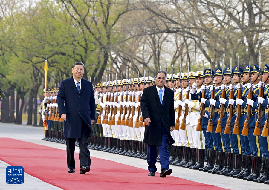 ??4月9日下午,國家主席習(xí)近平在北京人民大會堂同來華進行國事訪問的密克羅尼西亞聯(lián)邦總統(tǒng)西米納舉行會談。這是會談前,習(xí)近平在人民大會堂東門外廣場為西米納舉行歡迎儀式。新華社記者 岳月偉 攝