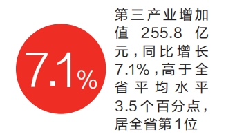 ??分產(chǎn)業(yè)看,三次產(chǎn)業(yè)增加值增速全面領(lǐng)先。第一產(chǎn)業(yè)增加值18.4億元,同比增長2.9%,高于全省平均水平0.3個(gè)百分點(diǎn),居全省第4位;第二產(chǎn)業(yè)增加值189.2億元,同比增長11.7%,高于全省平均水平5個(gè)百分點(diǎn),居全省第2位;第三產(chǎn)業(yè)增加值255.8億元,同比增長7.1%,高于全省平均水平3.5個(gè)百分點(diǎn),居全省第1位。(記者 李宗寬)