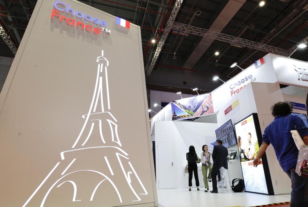 ??2019年11月5日,第二屆中國國際進口博覽會在上海國家會展中心開幕。這是參觀者走過法國國家館。新華社記者 張玉薇 攝
