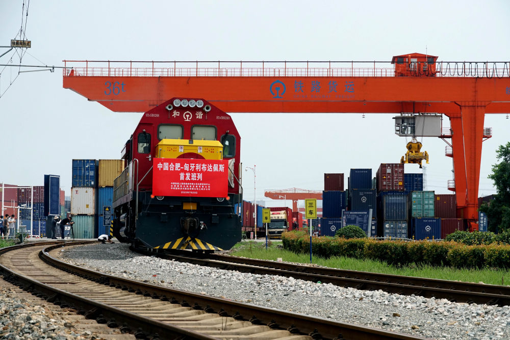 ??2022年7月29日,合肥至匈牙利布達佩斯的中歐班列從合肥北站物流基地駛出,標志著合肥中歐班列通往匈牙利布達佩斯的線路正式開通。新華社發(fā)(席靜玉攝)