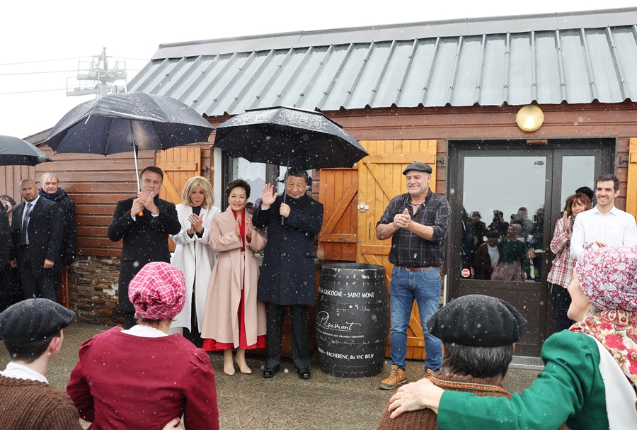 ??馬克龍和布麗吉特陪同習(xí)近平和彭麗媛離開圖爾馬萊山口返回塔布,并在機(jī)場舉行正式歡送儀式。兩國元首相約在北京再見。