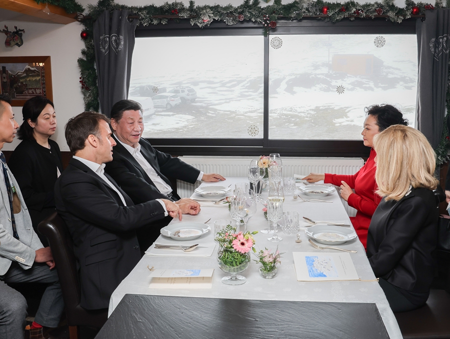 ??驛站木屋外,春雪紛飛,云海浩渺。兩國元首夫婦憑窗而坐,遠(yuǎn)眺群山,品當(dāng)?shù)靥厣牢?,論天下風(fēng)云際會,在輕松愉快的氛圍中就一些重要問題進(jìn)行了戰(zhàn)略溝通。