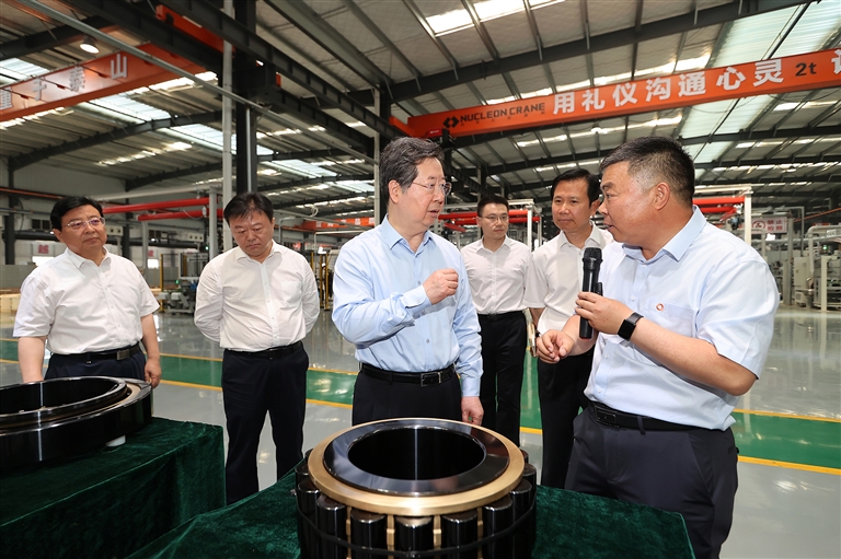 ??六月十一日,省委書記樓陽(yáng)生到新安縣新強(qiáng)聯(lián)公司,調(diào)研科技創(chuàng)新、產(chǎn)業(yè)發(fā)展情況。記者 董亮 蔡迅翔 攝
