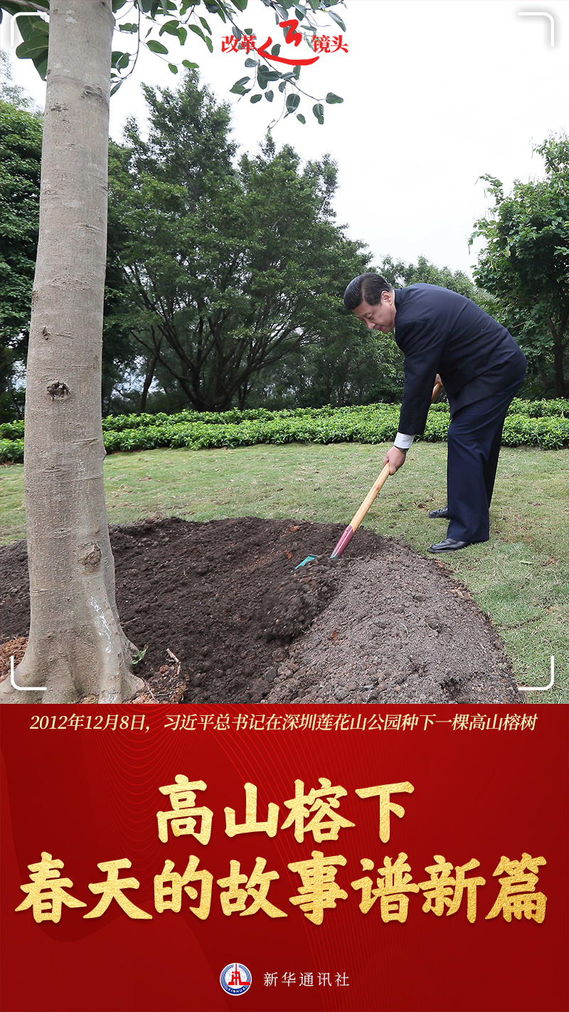 ??高山榕是嶺南本土樹種,四季常綠、蒼勁挺拔。1992年,鄧小平同志在深圳仙湖植物園也曾親手種下一棵高山榕。“高山榕的特質(zhì)與堅韌頑強、奮發(fā)向上的改革精神相契合。”時任深圳市蓮花山公園管理處主任楊義標(biāo)說。