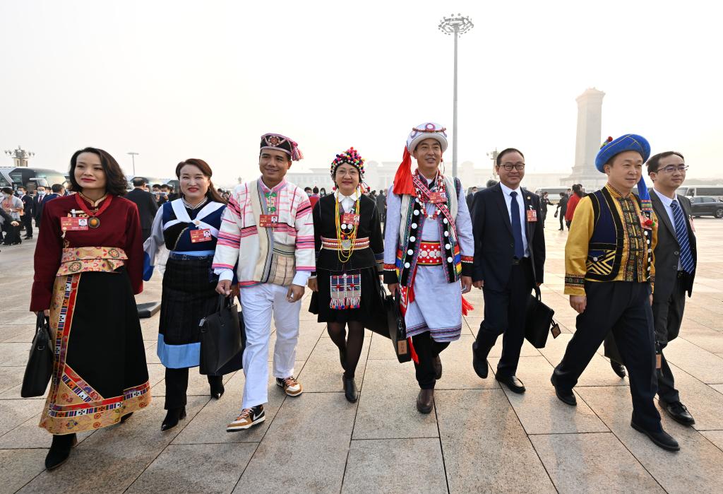 ??2023年3月5日,第十四屆全國(guó)人民代表大會(huì)第一次會(huì)議在北京人民大會(huì)堂開幕。這是全國(guó)人大代表走向會(huì)場(chǎng)。新華社記者 陳益宸 攝