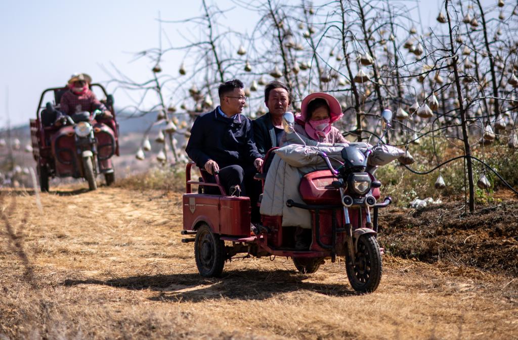 ??全國(guó)人大代表袁海波(右三)在云南省曲靖市馬龍區(qū)一種植基地了解務(wù)工人員就業(yè)需求(2023年2月11日攝)。新華社記者 江文耀 攝