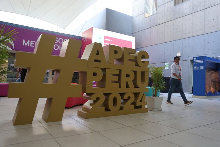 ??這是11月8日在秘魯利馬拍攝的2024年亞太經(jīng)濟(jì)合作組織(APEC)會(huì)議標(biāo)識(shí)。新華社記者 許睿 攝