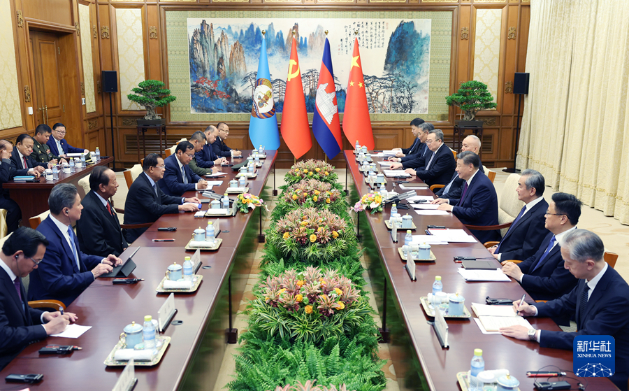 ??習(xí)近平指出,當(dāng)前,國際形勢變亂交織,全球性挑戰(zhàn)層出不窮,考驗著各國的應(yīng)對和選擇。中柬兩國都致力于做世界的和平力量、發(fā)展力量、進(jìn)步力量。中方將繼續(xù)支持柬埔寨在國際和地區(qū)事務(wù)中發(fā)揮更大作用,壯大“全球南方”力量,支持東盟堅持戰(zhàn)略自主,維護中心地位,堅決反對外部勢力將冷戰(zhàn)思維引入本地區(qū),堅定不移推動?xùn)|盟一體化和共同體建設(shè)。中方愿同柬方堅定道不改、志不變的決心,增強底線思維,加強協(xié)作和配合,共同應(yīng)對各種風(fēng)險。