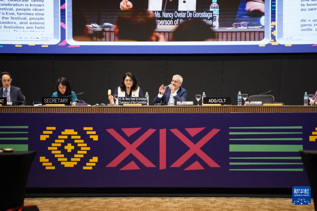 ??這是12月4日在巴拉圭亞松森拍攝的聯(lián)合國教科文組織保護非物質(zhì)文化遺產(chǎn)政府間委員會第19屆常會評審現(xiàn)場。新華社記者 朱雨博 攝
