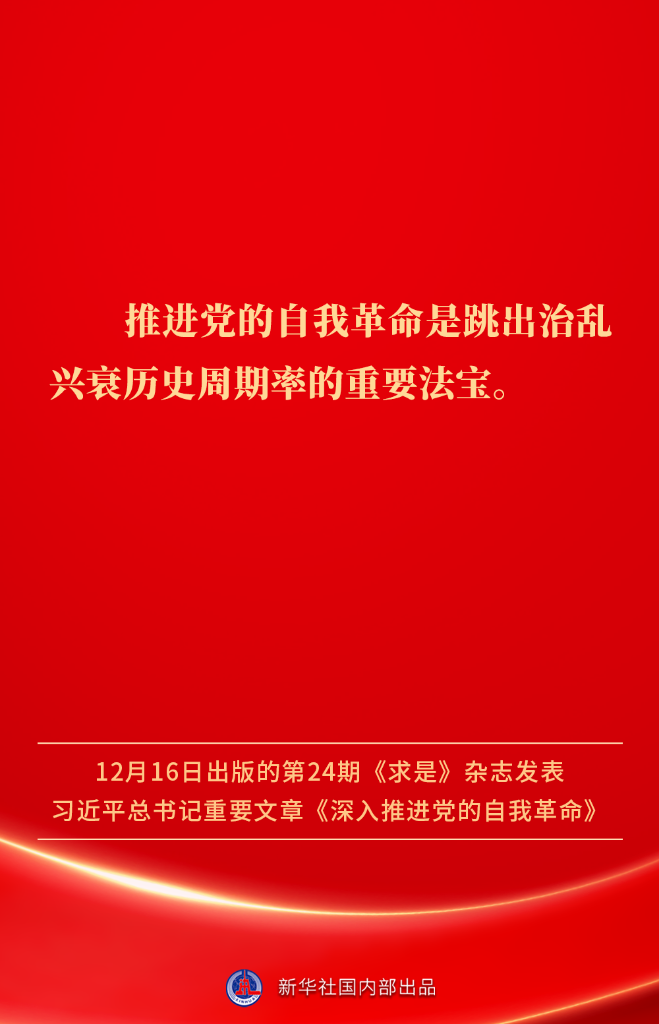? ?12月16日出版的第24期《求是》雜志發(fā)表習近平總書記重要文章《深入推進黨的自我革命》。我們黨為什么要自我革命、為什么能自我革命、怎樣推進自我革命?習近平總書記這樣闡述——