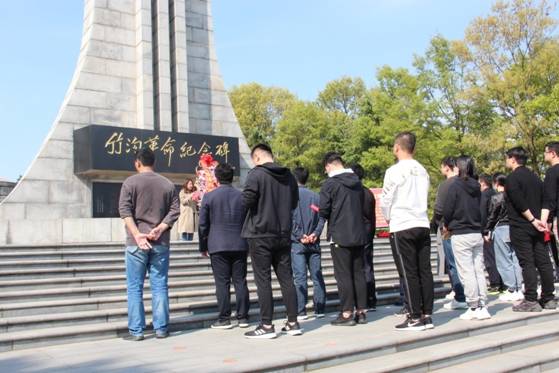 站在革命英雄紀(jì)念碑前,全體人員整齊列隊(duì),莊嚴(yán)肅穆,向革命烈士鞠躬默哀。